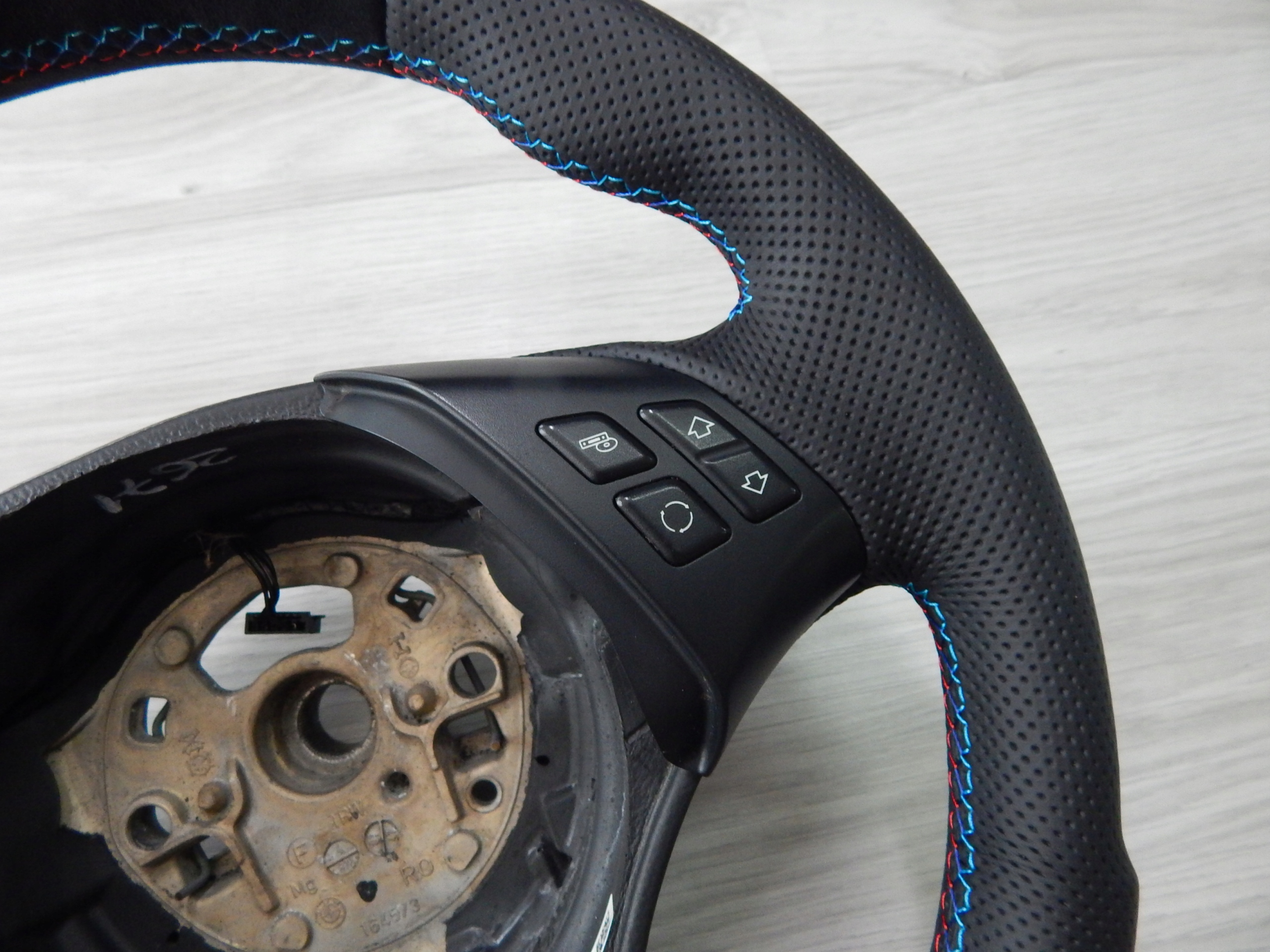 Używana kierownica obszyta nową naturalną skórą 1-go gatunku oraz alcantarą