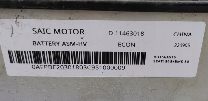 Каталожний номер запчастини: | 11463018, BU156A51S, , SEAT156G, BMS-30, 156Ah, 327V, BATERIA, TRAKCYJNA, AKUMULATOR, MAGAZYN, ENERGII, MG, MG4, 51, kWh, 2022-2025 |
