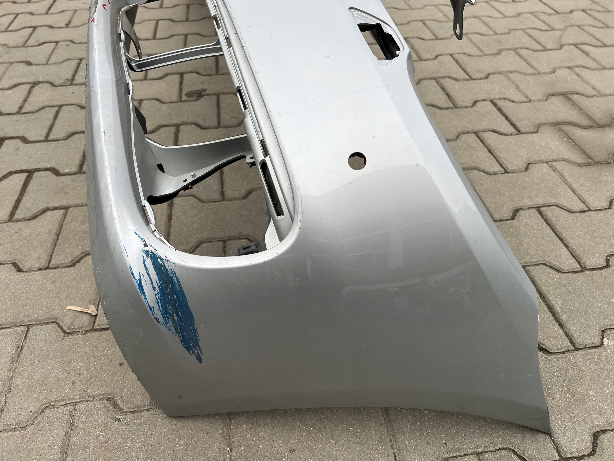 Na zdjęciach pokazujemy ewentualne uszkodzenia samego zderzaka (np. pęknięcia, ułamane mocowania). Wady lakieru mogą, ale nie muszą występować – nie zawsze są widoczne na fotografiach i nie podlegają osobnemu opisywaniu.