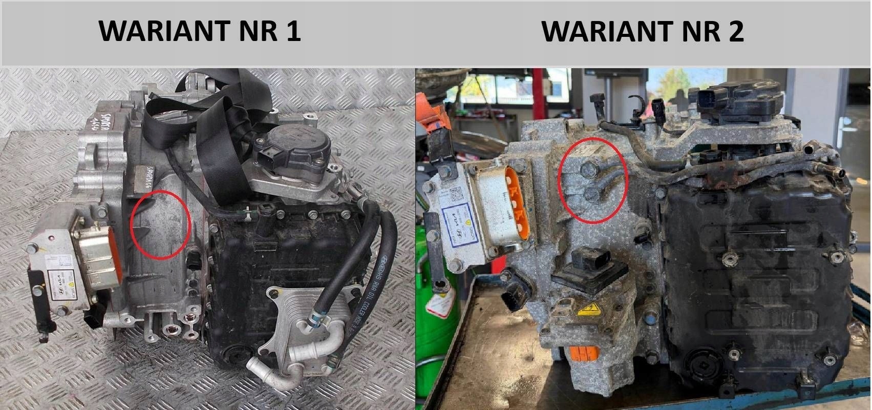 Występują dwa warianty skrzyni biegów. Na tej aukcji sprzedawana jest skrzynia biegów "WARIANT NR 1". Różnią się one m.in. podłączeniem przewodów oraz kostką elektryczną. Różnice pokazane są na zdjęciu numer 9 i 10.Skrzyni biegów "WARIANT NR 2" nie posiadam.