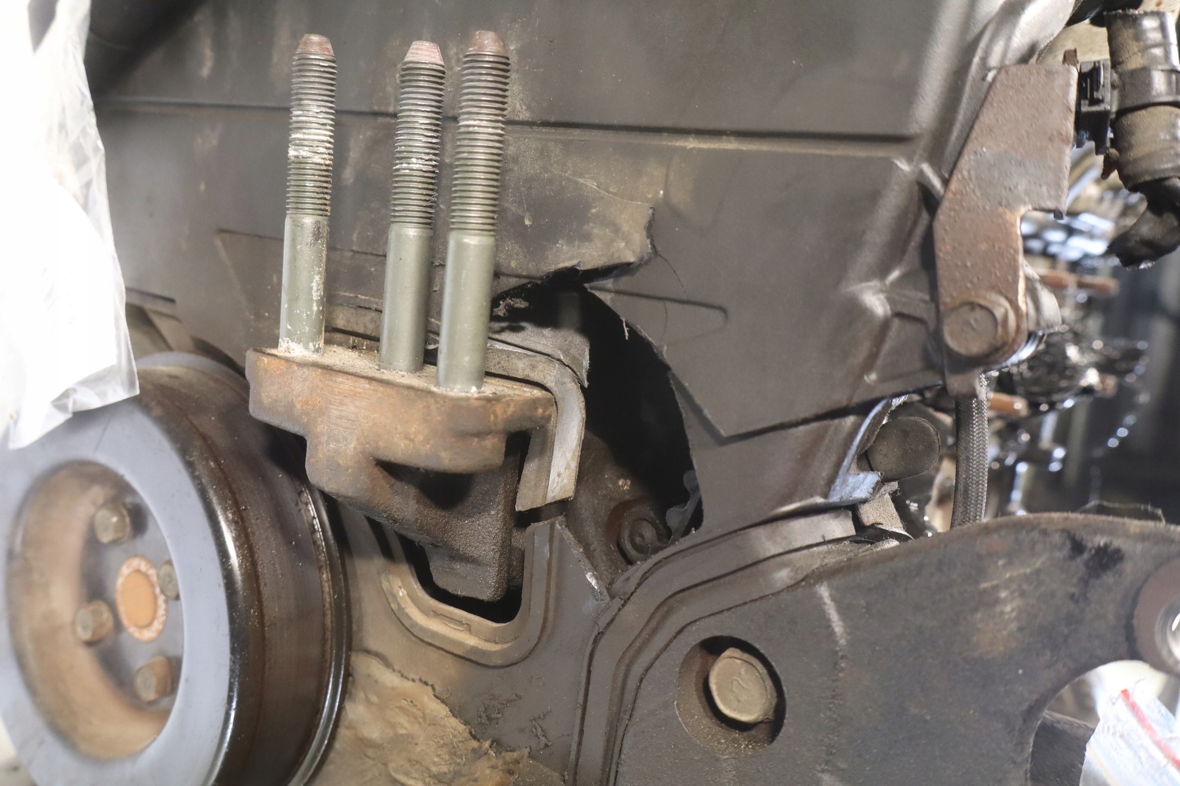 Silnik posiada uszkodzoną obudowe rozrządu oraz wgniecioną miskę olejową nie ma to wpływu na jego sprawność .