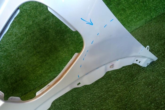 Błotnik w zaznaczonym miejscu uszkodzony naprawiany