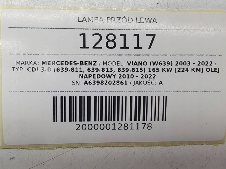 Przedmiot aukcji: LAMPA PRZÓD LEWA VIANO W639 A6398202861 BI-XENON LED EUROPA KOMPLET