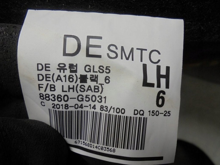 | Каталожний номер запчастини: | OPARCIE FOTELA KIEROWCY SKÓRA 88360-G5031 NIRO I 1, 6 GDI HYBRYDA 17r Merii-Car |
