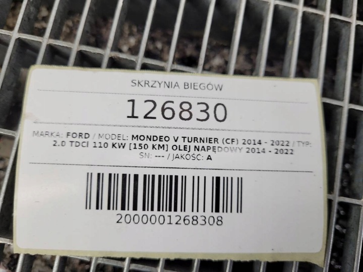 SKRZYNIA BIEGÓW, KOMPLETNA,SPRAWNA, GOTOWA DO MONTAŻU, UŻYWANA, ZDEMONTOWANA Z MONDEO V, PRZEBIEG OKOŁO 160 TYS km