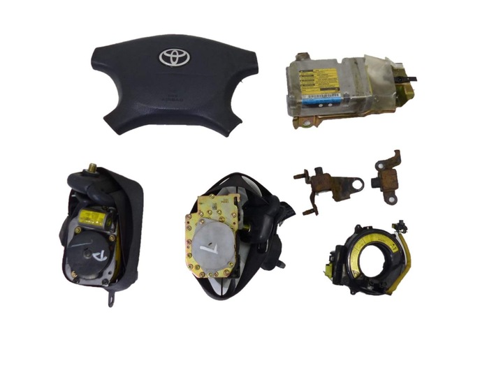 Opis: podusz, kierow,+tasma+2x sensory+sterownik +pas PL+PP 1,4B 16v VVTI 71kW wielop, 5dHB klimat,manual,ABS europa 00-01r E11 lift granatowy(8M4) -jakość A TOYOTA COROLLA E11 AIRBAG 00-01 EUROPA