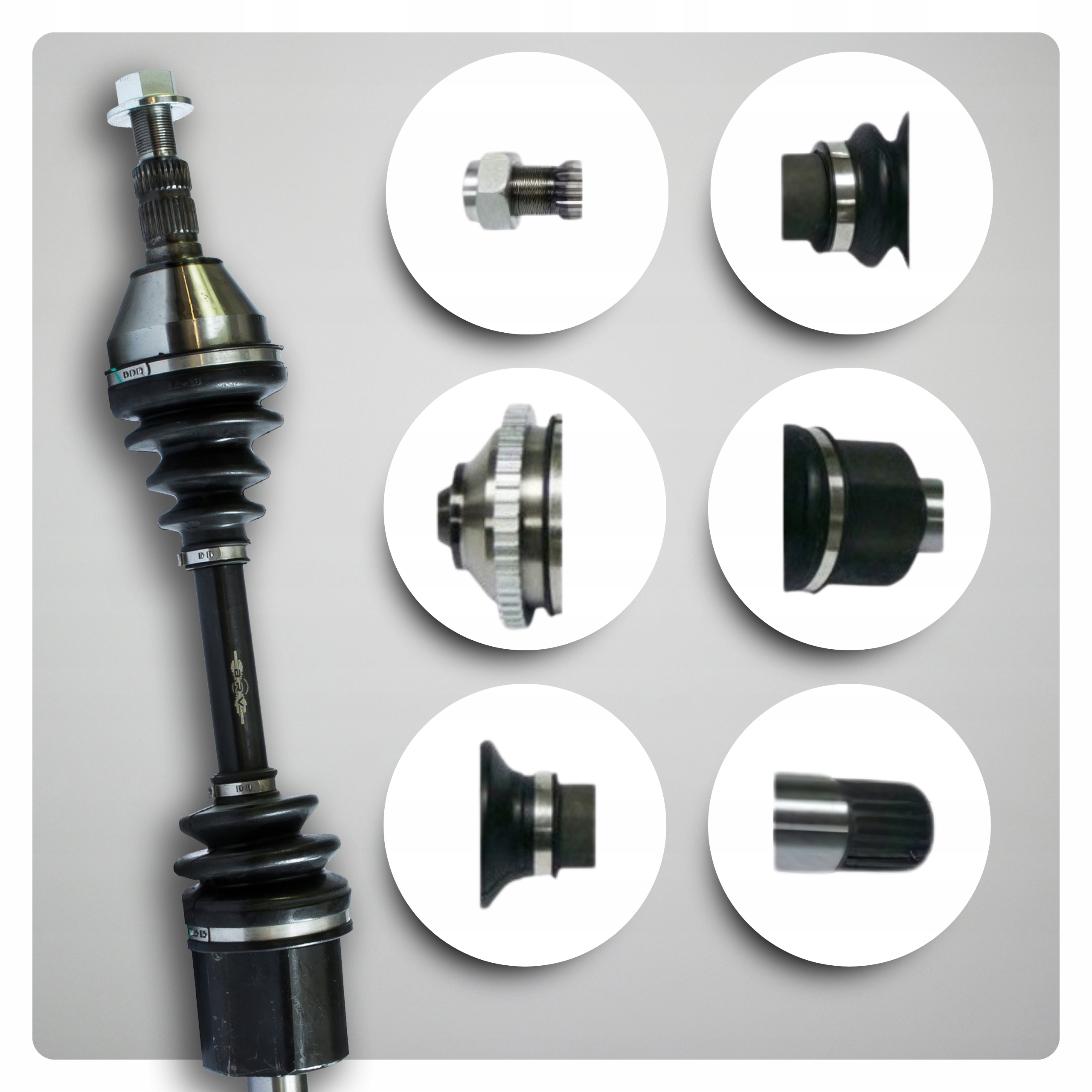 ✅ Wytrzymały wał stalowy z ochroną antykorozyjną, neoprenowe osłony przegubów oraz zintegrowane koronki i pierścienie ABS gwarantują długotrwałą ochronę i stabilność.