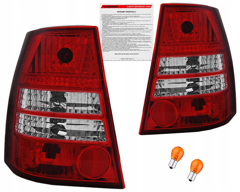 PRZEDMIOT AUKCJI: KOMPLET lamp tylnych (L+P), w wersji RED-WHITE (CZERWONO-JASNEJ), tuning + GRATIS w postaci 2 pomarańczowych żarówek do kierunkowskazów.