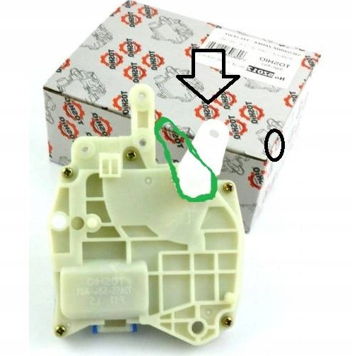 Ponieważ w tym modelu były dwa rodzaje siłowników (bywało że i 3, to pierw trzeba sprawdzić ilość pinów, następnie ułożenie oczka eliptycznego na ryglu, czy jest poziome jak na zdjęciach (zaznaczone strzałką), czy może pionowe (jak ten dorysowany na czarno). I czy rygiel nie jest w takim położeniu, jak ten dorysowany na zielono. Jeśli tak jest to proszę o wiadomość przed zakupem.