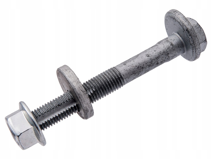 Śruba mimośrodowa do regulacji geometrii (zbieżności) zawieszenia w zestawie z nakrętka oraz podkładka regulacyjną