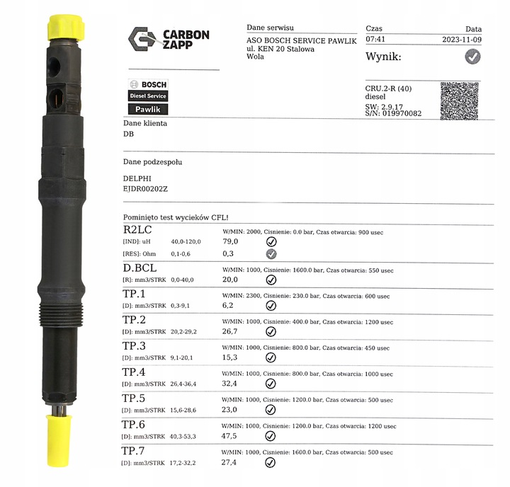 ✅ Tak zregenerowany wtryskiwacz jest jak nowy, zgodnie ze specyfikacją producenta.